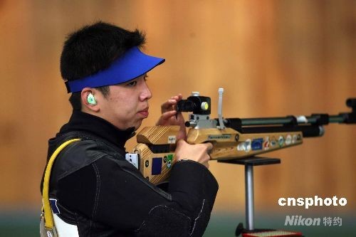 图:曹逸飞在奥运会男子10米气步枪预赛中