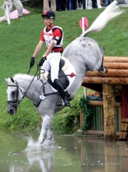 中新网8月11日电 奥运马术今早举行三项赛中,最关键的越野赛中国选手华天驾驭“武松”跨栏时失蹄堕马,被淘汰出局。华天早前在盛装舞步赛环节暂列第31位,紧随奥运六朝元老新西兰选手托德之后。华天在攻克八号“雨花台”障碍栏时,“武松”前脚碰到障碍物,马失前蹄,华天被抛落地面。华天事后表示,这是他没有想到的。
