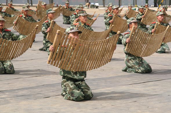 “我们前四个八拍动作取名为“礼之用,和为贵”,一开场就要把古代文人的气质淋漓尽致地刻画出来,要高傲,要自然,要放松,所有军人姿态都要改过来……”第一天,导演们的一串“连环炮”就让激情昂扬的参演官兵傻了眼。