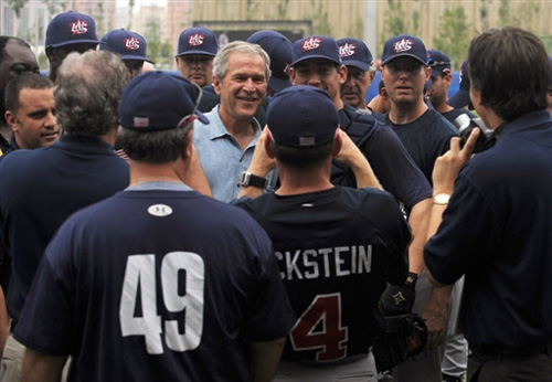 8月11日,美国总统布什现身五棵松棒球场,亲自上阵秀球技,并与美国棒球队运动员交谈并合影留念。从8月8日,布什相继来到“鸟巢”观看奥运开幕式,“水立方”观看游泳比赛,五棵松篮球馆观看篮球比赛,可称得上是美国最大牌的超级体育迷。