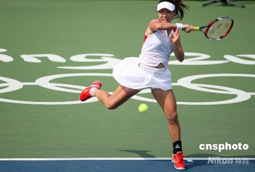8月12日,中国网球名将郑洁在北京奥运会女子网球单打第2轮比赛中,以2:1战胜西班牙选手利亚戈斯特拉。 中新社发 武仲林 摄