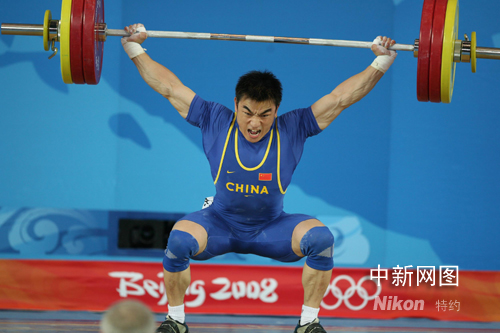 中国小将廖辉夺得北京奥运会举重男子69公斤级金牌。中新社记者 武仲林 摄