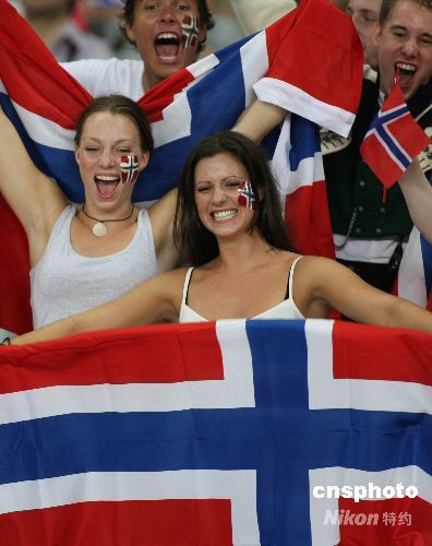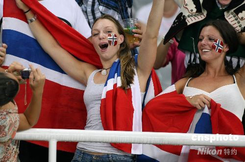 图:挪威美女球迷奥运赛场享受激情