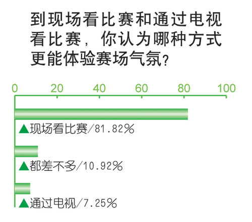 事实上,现场观看比赛,体验奥运气氛,始终是大多数公众的梦想。本次调查发现,多达81.8%的人认为通过电视看毕竟不如到现场过瘾——后者才能真正体验赛场气氛。