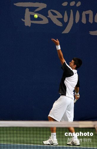 8月12日,网球男单第二轮争夺中,大赛3号种子、塞尔维亚天才少年德约科维奇直落两盘,以总比分2比0击败德国老将舒特勒,进入下一轮。中新社发 王韶骅 摄