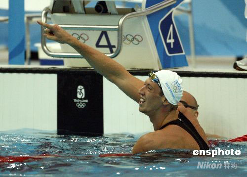 8月13日,北京奥运会男子100米自由泳半决赛,澳大利亚选手埃蒙·沙利文以47秒05的成绩打破在第一组中刚刚由法国选手阿兰·贝尔纳创造的47秒20的世界纪录,获得半决赛第一。中新社发 杜洋 摄