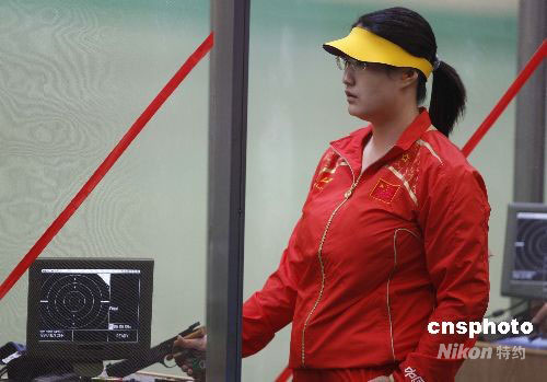 图:女子25米运动手枪决赛中国选手陈颖夺金