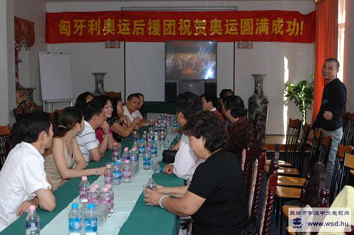 中新网8月13日电 据匈牙利《欧洲万事达报》报道,8月11日晚,匈牙利奥运后援团在东方宾馆举行座谈会,庆祝北京奥运会开幕式成功。出席的社团有:温州商会、福建同乡会、明溪商会、福清同乡会、福清商会、匈牙利华人妇女联合会、上海商会、和平统一促进会、中匈人民友好协会、河南商会、东北同乡会、河南同乡会、华联会、中医药学会、匈牙利华人妇女联合总会。