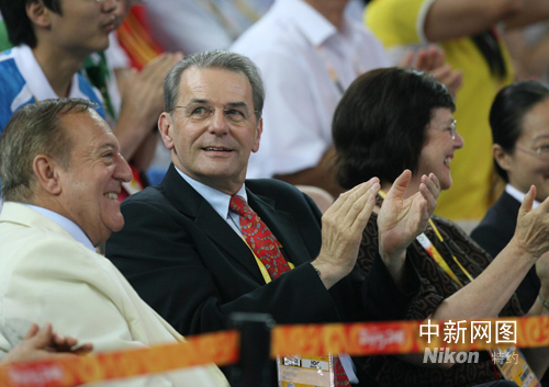 国际奥委会主席罗格在场下为打破世界纪录的刘春红精彩的表现鼓掌。中新社记者 武仲林 摄