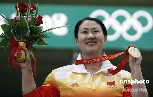 8月13日下午,北京奥运射击比赛女子25米手枪决赛在北京射击馆进行,中国选手陈颖表现完美,以总分793.4环夺得金牌,这一成绩也创造了新的奥运会纪录,并成为中国代表团在本届奥运会上获得的第15枚金牌。 中新社发 盛佳鹏 摄
