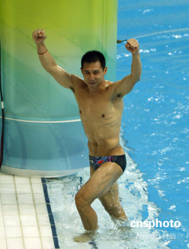 王峰出水后庆祝。