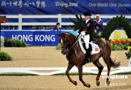 八月十三日晚,中国选手刘丽娜在香港沙田奥运马术主赛场轻驾坐骑优雅上场,这是中国选手首次参赛奥运会马术项目。当日,奥运马术比赛进行盛装舞步团体赛和个人资格赛(大奖赛科目)进行首日赛事。中新社发 洪少葵 摄