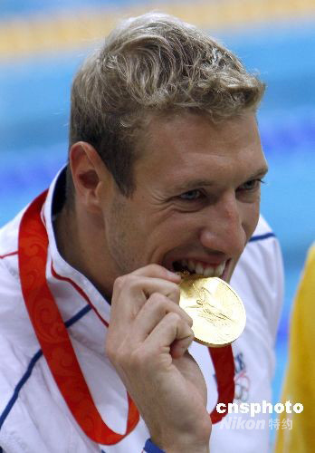 图:法国泳将贝尔纳夺男子100米自由泳金牌
