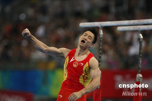 图:杨威夺得北京奥运会体操男子个人全能冠军