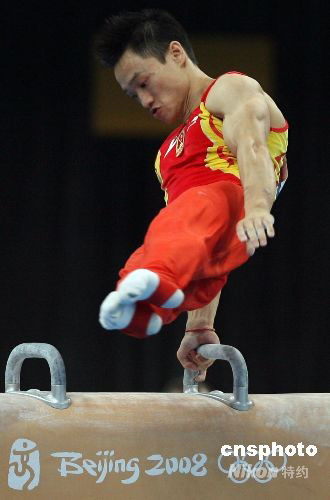 8月14日,中国奥运“三朝元老”杨威在北京奥运会体操男子个人全能决赛中力压群雄,以94.575分,高出亚军2.6分的较大优势,夺得这块体操个人项目中分量最重的金牌,他也成为继李小双之后中国体操的第二位个人全能奥运冠军。中新社发 武仲林 摄
