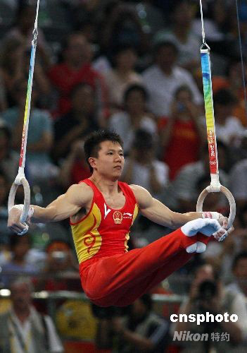 8月14日,北京奥运会体操男子个人全能决赛中,中国小将陈一冰未能发挥出水平,以总分74.225意外垫底。中新社发 武仲林 摄