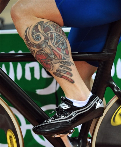 英国自行车运动员纹在腿部的图腾,火焰一般,煞是好看。
