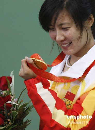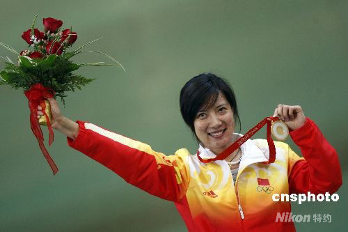 图:杜丽创造女子50米步枪三姿奥运新纪录