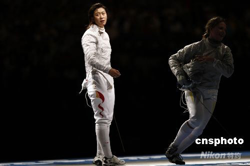 8月14日,北京奥运会女子佩剑团体冠亚军决赛在北京国际会议中心击剑馆举行,中国与乌克兰争夺冠军。最后中国队惨遭逆转,以一分之差痛失金牌获得第二名。 中新社发 盛佳鹏 摄
