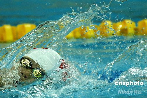 8月14日,在女子800米自由泳预赛中,第一小组的头名被中国香港的运动员欧铠淳获得,她的成绩是8分41秒66,但这个成绩不足以进入决赛。中新社发 杜洋 摄