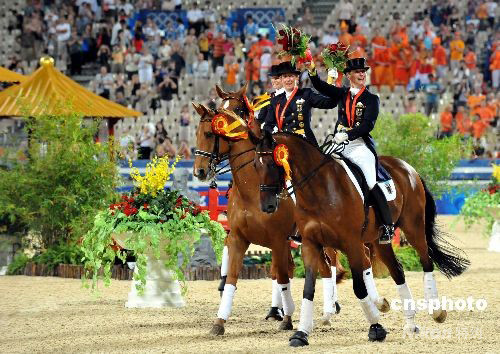 图:德国队获得奥运马术盛装舞步团体赛冠军