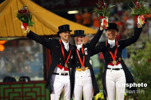 图:丹麦队获得奥运马术盛装舞步团体赛铜牌