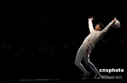 8月12日晚,08北京奥运会男子佩剑个人赛决赛中,中国选手仲满以15-9战胜对手获得冠军,这是中国男子击剑在奥运会上第一次获得冠军。中新社发 盛佳鹏 摄