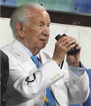 中新网8月15日电 据香港大公报报道,8月14日,国际奥委会终身名誉主席萨马兰奇在香港观看奥运马术盛装舞步团体赛决赛。