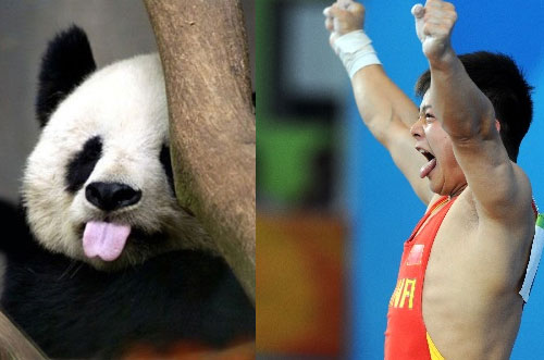 网友将《功夫熊猫》中大熊猫原型“滚滚”的吐舌照与龙清泉在比赛时的调皮照放在一起,并为这名新科冠军取名“龙滚滚”。听说这一绰号后,龙清泉开心地笑纳:“是挺像!真的!”