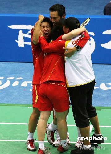 杜婧于洋夺得羽毛球女双金牌与教练激情拥抱