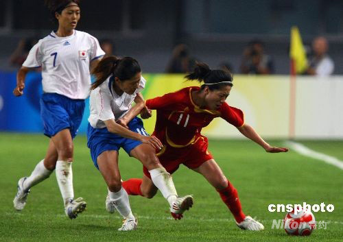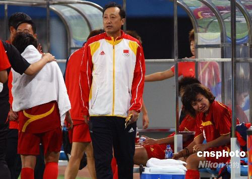 8月15日晚,北京奥运会女子足球1/4决赛,中国对日本的比赛在秦皇岛奥体中心举行,最终中国队0:2负于日本队,失去进入四强的机会。中新社发 刘新 摄