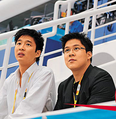 霍启山、霍启刚昨日现身水立方,为郭晶晶打气。