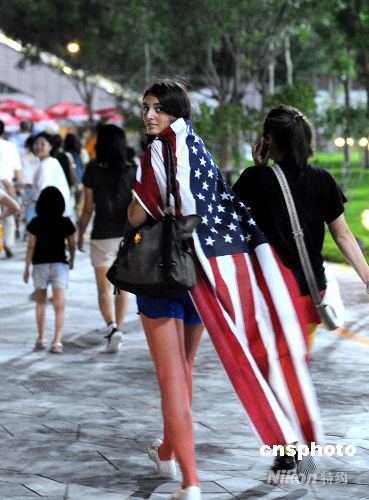 图:身披星条旗的美国女观众