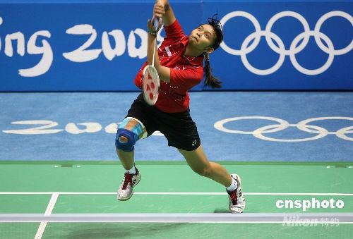 8月16日,中国选手卢兰在北京奥运会羽毛球女单铜牌决赛中以1:2负于印尼选手玛丽亚·克丽斯廷·尤利安蒂,无缘铜牌。 中新社发 武仲林 摄