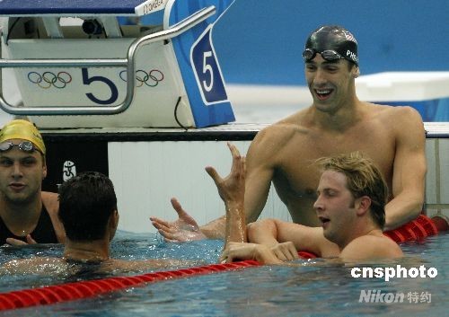 各国选手纷纷祝贺菲尔普斯创造的7金纪录。