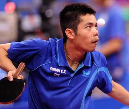 在男子乒乓球团体比赛中,中华台北代表队1比3败给韩国。其中唯一得胜点由庄智渊获得。(上图)