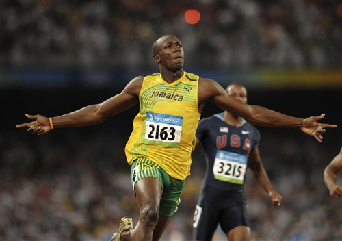 牙买加名将博尔特加冕北京奥运会“百米飞人”