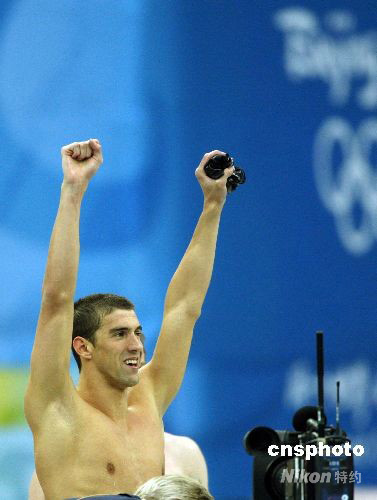 菲尔普斯"水立方"圆梦 夺北京奥运个人第八金