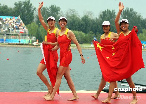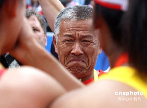 8月17日下午,中国组合唐宾、金紫薇、奚爱华、张杨杨在北京奥运会赛艇女子四人双桨决赛中以6分15秒95的成绩超越英国、德国等世界名将获得冠军,取得了历史性的突破。赛后,为了中国的赛艇事业奋斗了30多年的中国赛艇队总教练周琦年不禁老泪纵横。中新社发 任晨鸣 摄