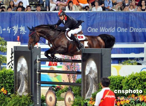 中国香港选手林立信在马术场地障碍赛第二轮资格赛再度登场。中新社发 邓庆乐 摄