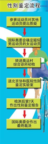 是不是每名运动员都需要接受性别鉴定?何方方说,北京奥运会仅对奥委会授权的可疑个例进行鉴定,主要是针对女运动员而言。首先是有人举报,然后针对奥委会受理的可疑人员进行鉴定。“不是对每个人都进行鉴定。”