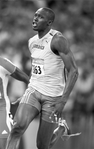 在这场关于谁是世界上跑的最快的人的较量中,博尔特的强势,让他与鲍威尔的双雄会变成了一枝独秀。而在最后20米关键的冲刺阶段,博尔特左顾右盼并明显放慢了脚步,但他仍以9秒69的成绩摘得金牌,并打破了自己此前创造的世界纪录。不过,那明显的“放水”让人感叹:如果博尔特全力去跑,那世界纪录是不是还要明显提高?然而一张照片为博尔特做出了解释:在距离终点还有20米左右的位置,博尔特左脚的鞋带散开,可能他就是在这种情况下才放慢速度完成决赛并最终创造优异成绩的。