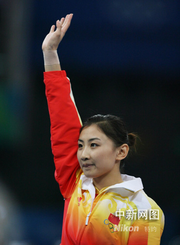 8月18日,中国选手何雯娜在北京奥运会女子蹦床比赛中夺得冠军。中新社记者 武仲林 摄