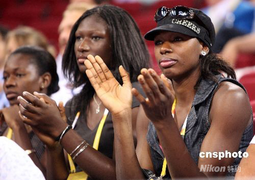奥运会男篮小组赛最后一轮8月18日打响,此前四战四胜的美国“梦八队”以106比57横扫德国队。昨天刚刚获得女子网球双打冠军的威廉姆斯姐妹到场为“梦八队”加油。中新社发 任晨鸣 摄