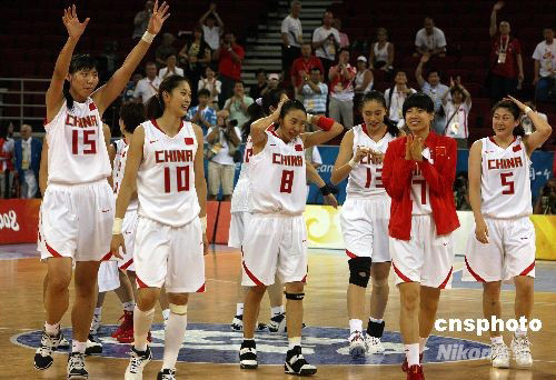 8月19日下午,北京奥运会女子篮球四分之一淘汰赛在北京五棵松篮球馆举行,中国女篮以77比62击败白俄罗斯率先进入前四强。这是16年之后中国女篮再次闯进奥运四强。中新社发 任晨鸣 摄