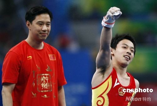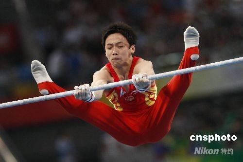 8月19日,中国选手邹凯以16.200分夺得北京奥运会体操男子单杠金牌。中新社发 盛佳鹏 摄