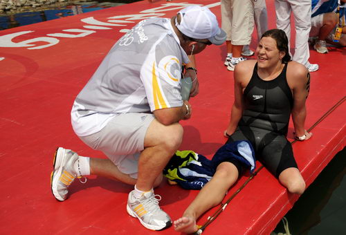 纳塔莉·杜托伊特(右)在赛后上岸。新华社记者刘大伟摄