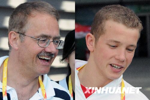 德国体操名将汉布钦和他的父亲。 新华社记者 黄勇 摄