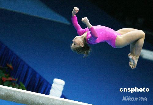 图为美国运动员进行平衡木表演。 中新社发 武仲林 摄