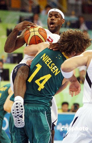北京奥运会男子篮球八进四淘汰赛8月20日在五棵松篮球馆开战,美国“梦八队”遭遇澳大利亚队的顽强抵抗,最后以116比85击败澳大利亚队进入奥运会男篮四强。中新社发 任晨鸣 摄